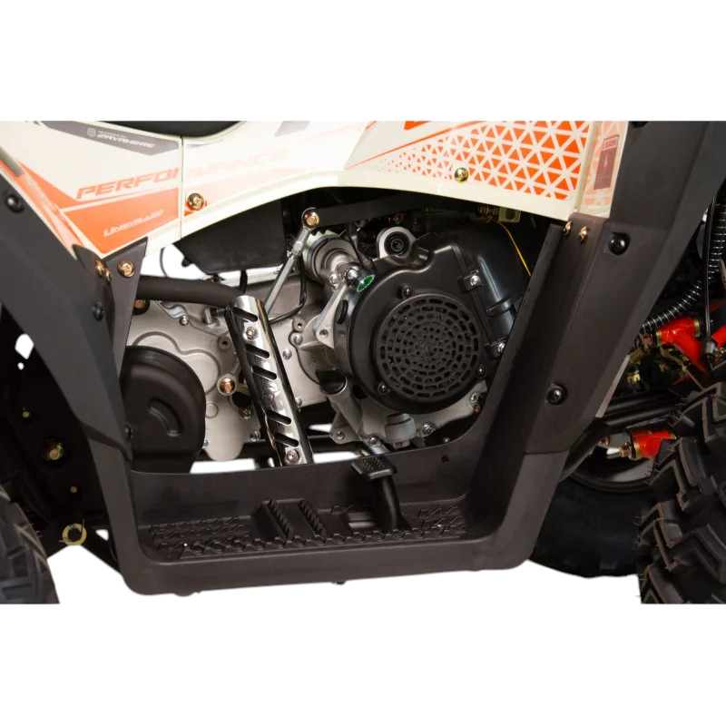 Quad posiada sprzęgło suche, odśrodkowe z przekładnią CVT oraz automatyczną skrzynię biegów 1+1 (1 bieg do przodu + wsteczny), co zapewnia płynność jazdy i wygodę użytkowania.