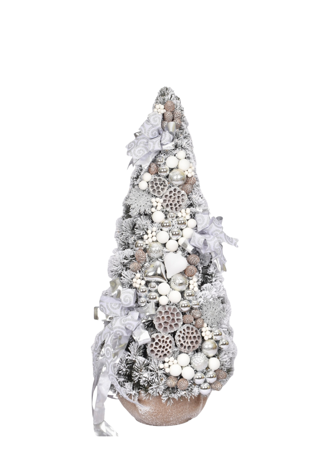 Choinka stożek Silver 110 cm gotowa, ekskluzywna dekoracja świąteczna