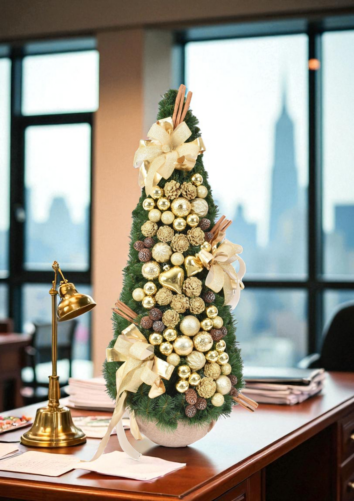 Choinka stożek złoty – gotowa, ekskluzywna dekoracja świąteczna