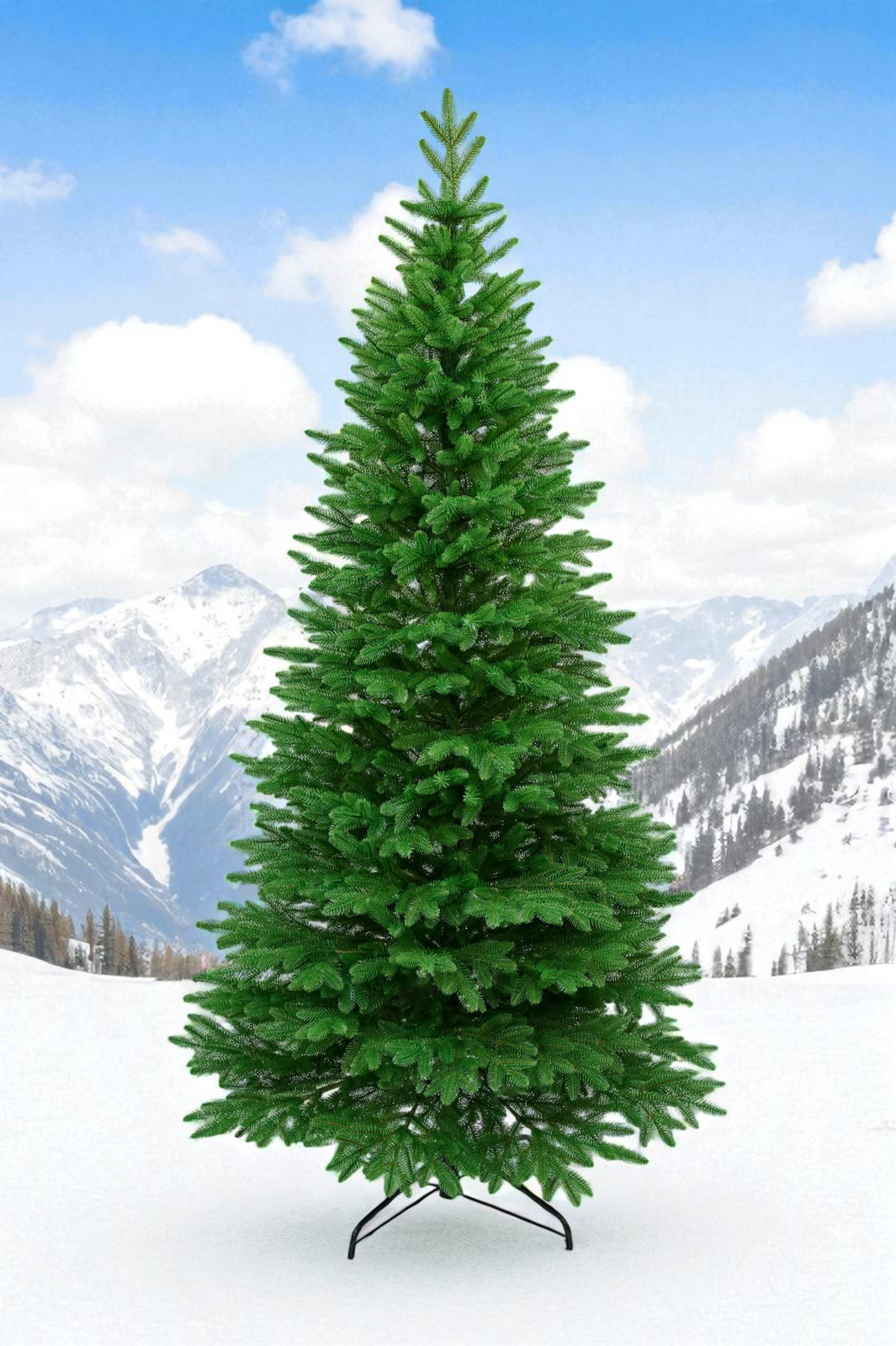 Świerk Górski to sztuczna choinka premium o wyjątkowo wąskim, gęstym i eleganckim pokroju, idealna do mniejszych pomieszczeń, biur lub salonów w stylu nowoczesnym. Jej regularny, stożkowy kształt oraz perfekcyjnie odwzorowane gałązki PE sprawiają, że wygląda jak prawdziwe drzewko prosto z górskiego lasu.