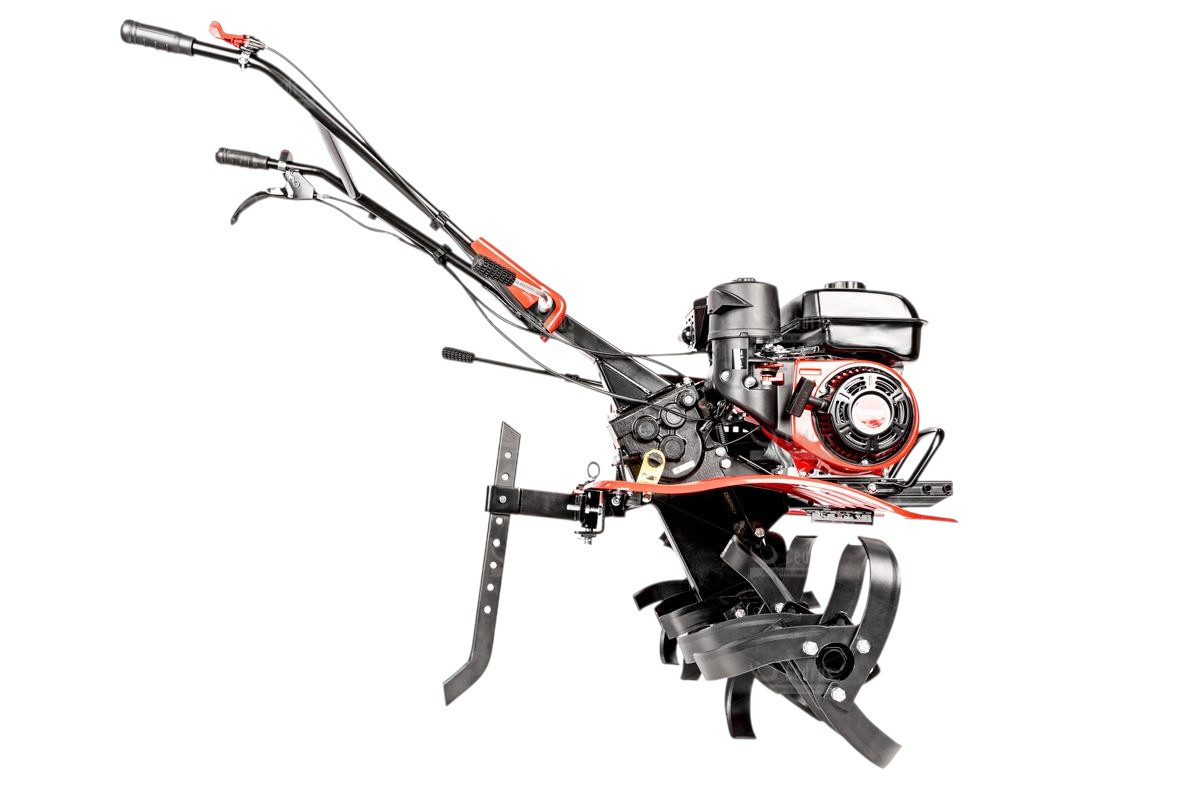 Maszyna posiada 2 biegi do przodu i 1 bieg wsteczny, zapewniając komfortowe manewrowanie nawet na nierównym terenie. Solidna obudowa oraz wytrzymała przekładnia zębata gwarantują długą żywotność urządzenia. Pojemny zbiornik paliwa o pojemności 3,6 litra i pojemność oleju 0,6 litra sprawiają, że urządzenie jest gotowe do długotrwałej pracy.