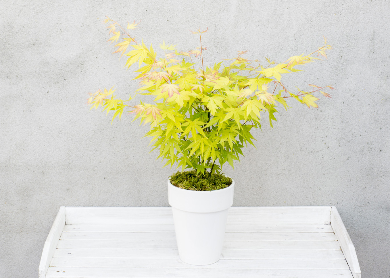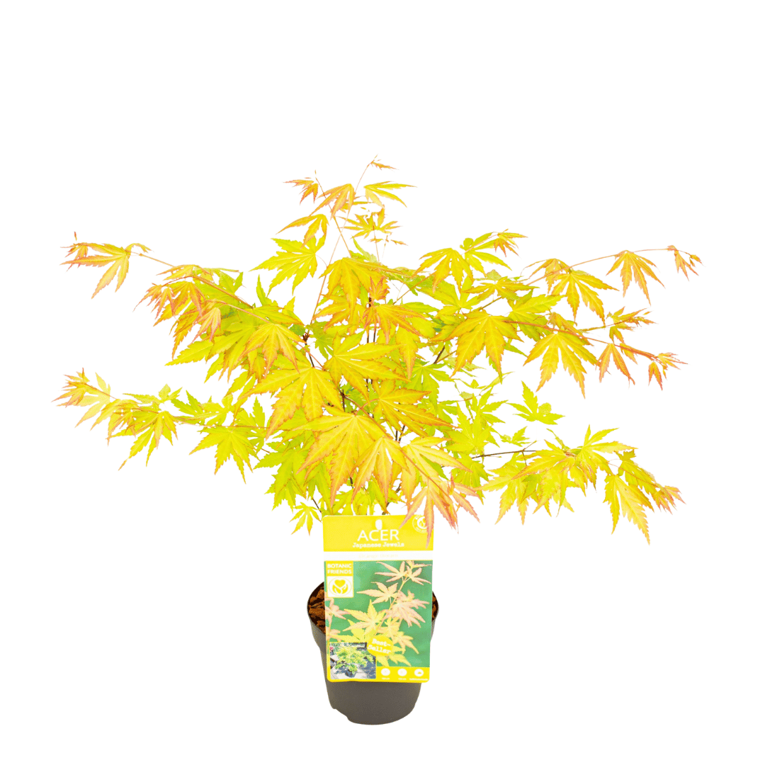 - Klon palmowy 'Orange Dream' to wolno rosnący krzew o wzniesionym pokroju, dorastający do 3-4 m wysokości, z intensywnie pomarańczowymi wiosennymi liśćmi, które później przybierają jasnożółtą barwę z pomarańczowym brzegiem, wymagający żyznej, kwaśnej gleby