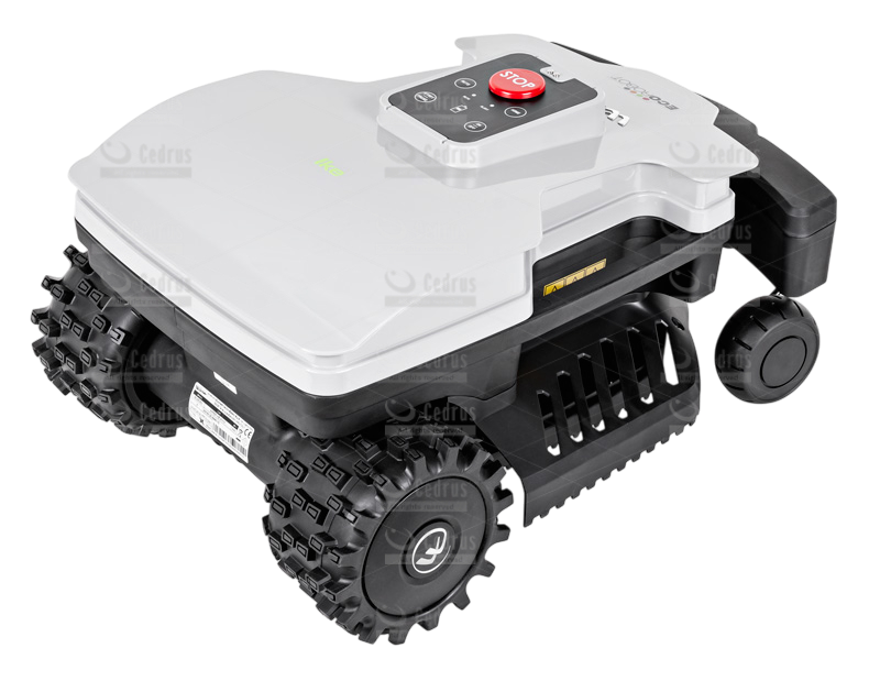 Kosiarka wyposażona jest w kod PIN, opcjonalny alarm GPS (geoogrodzenie) oraz ochronę IPx5, dzięki czemu jest odporna na wilgoć i zabrudzenia.