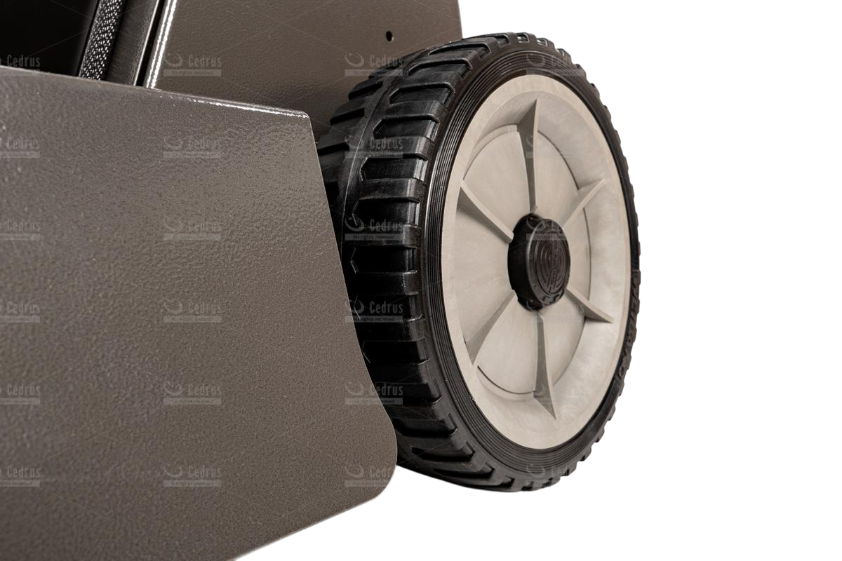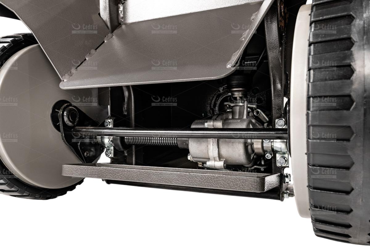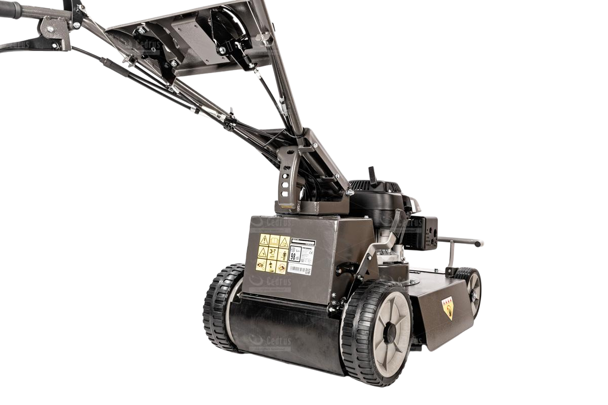 Dzięki szerokości koszenia 53 cm oraz masywnej konstrukcji, maszyna szybko radzi sobie nawet z dużymi powierzchniami.