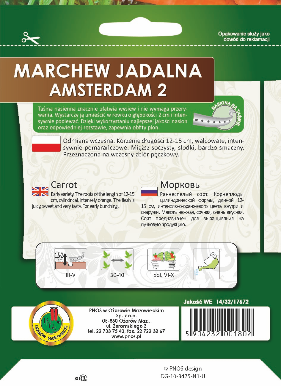 Marchew 'Amsterdam' to doskonały wybór dla ogrodników ceniących szybkie, zdrowe i smaczne plony. Wybierz nasiona na taśmie i ciesz się wczesnym zbiorem słodkich, soczystych korzeni.