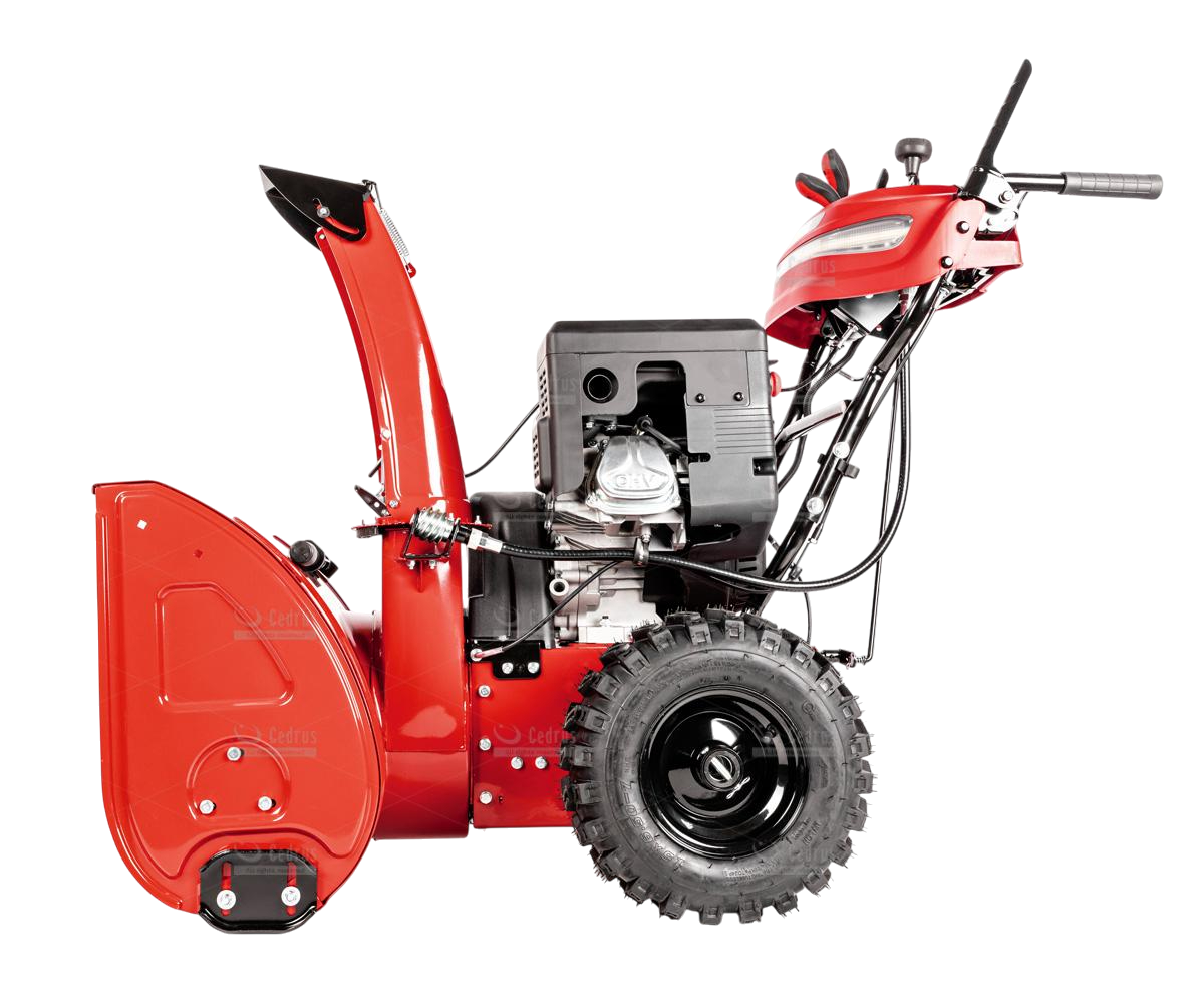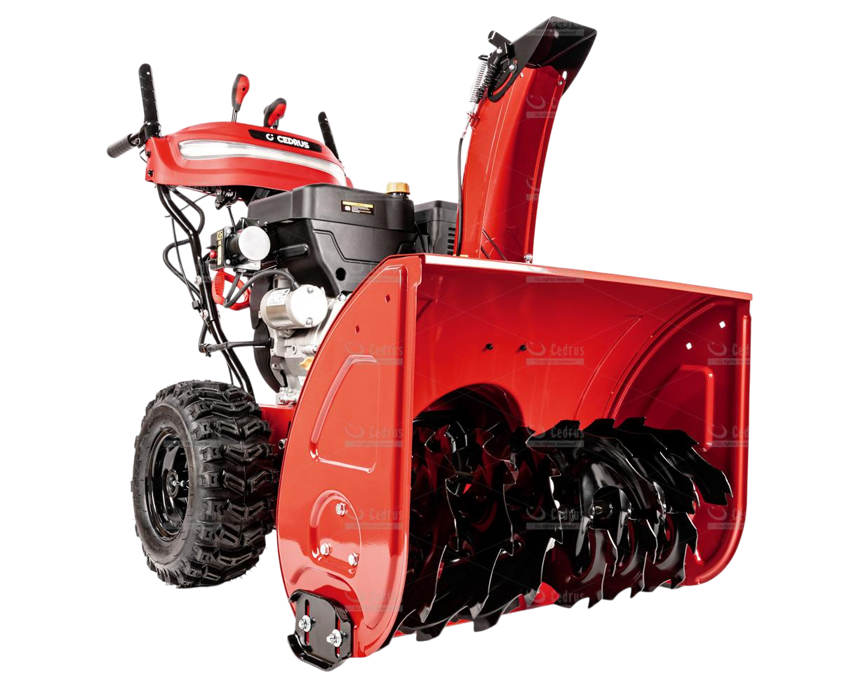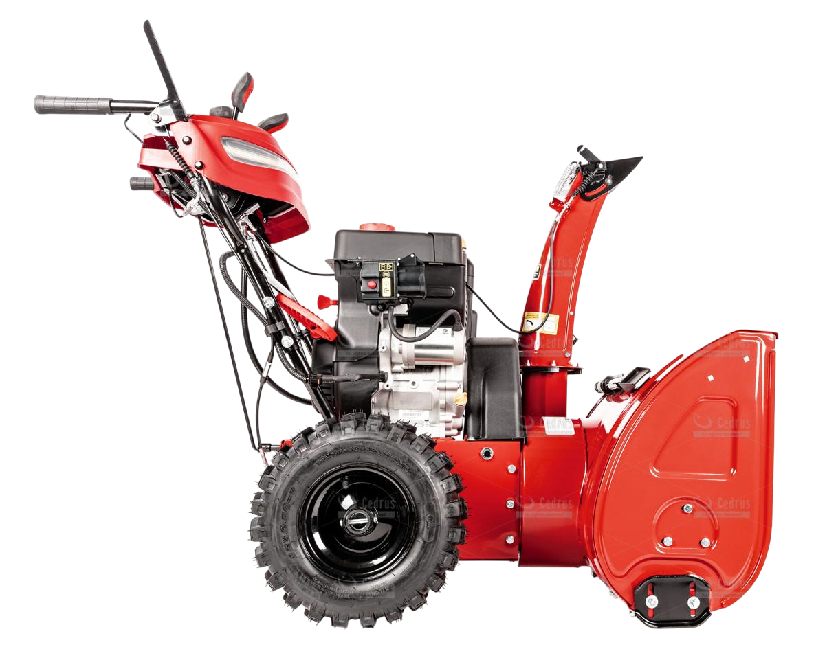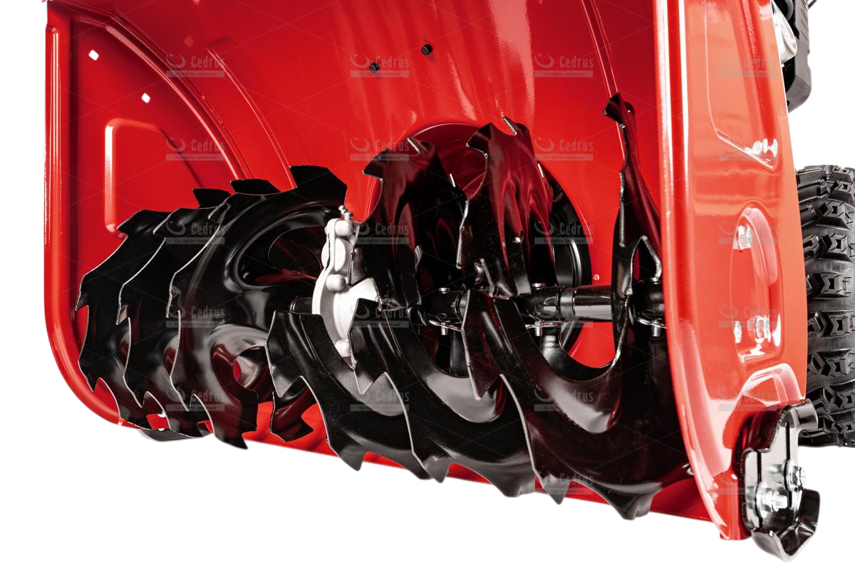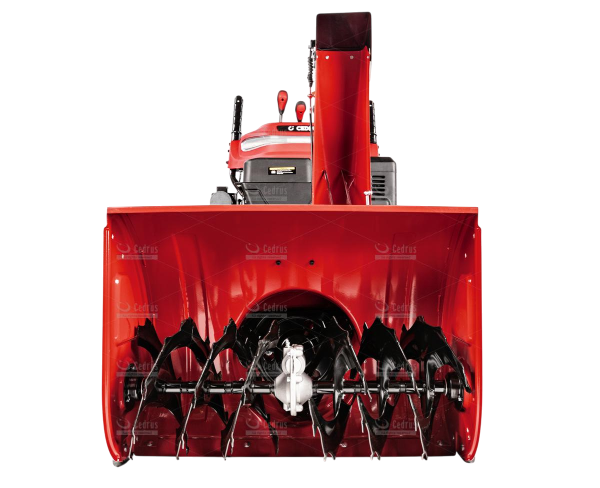Odśnieżarka Cedrus wyposażona jest w metalowe płozy śnieżne oraz metalowy deflektor z równie solidną końcówką. Odległość wyrzutu śniegu regulowana jest w zakresie od 1 do 15 metrów (w zależności od rodzaju śniegu). Bieżnik kół jest agresywny, zimowy (rozmiar 15 x 6,5 - 7”), co zapewnia doskonałą trakcję.
