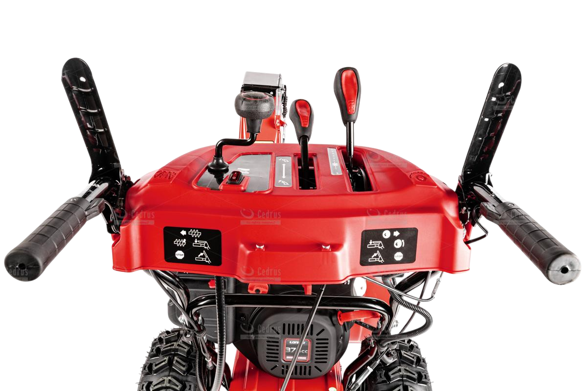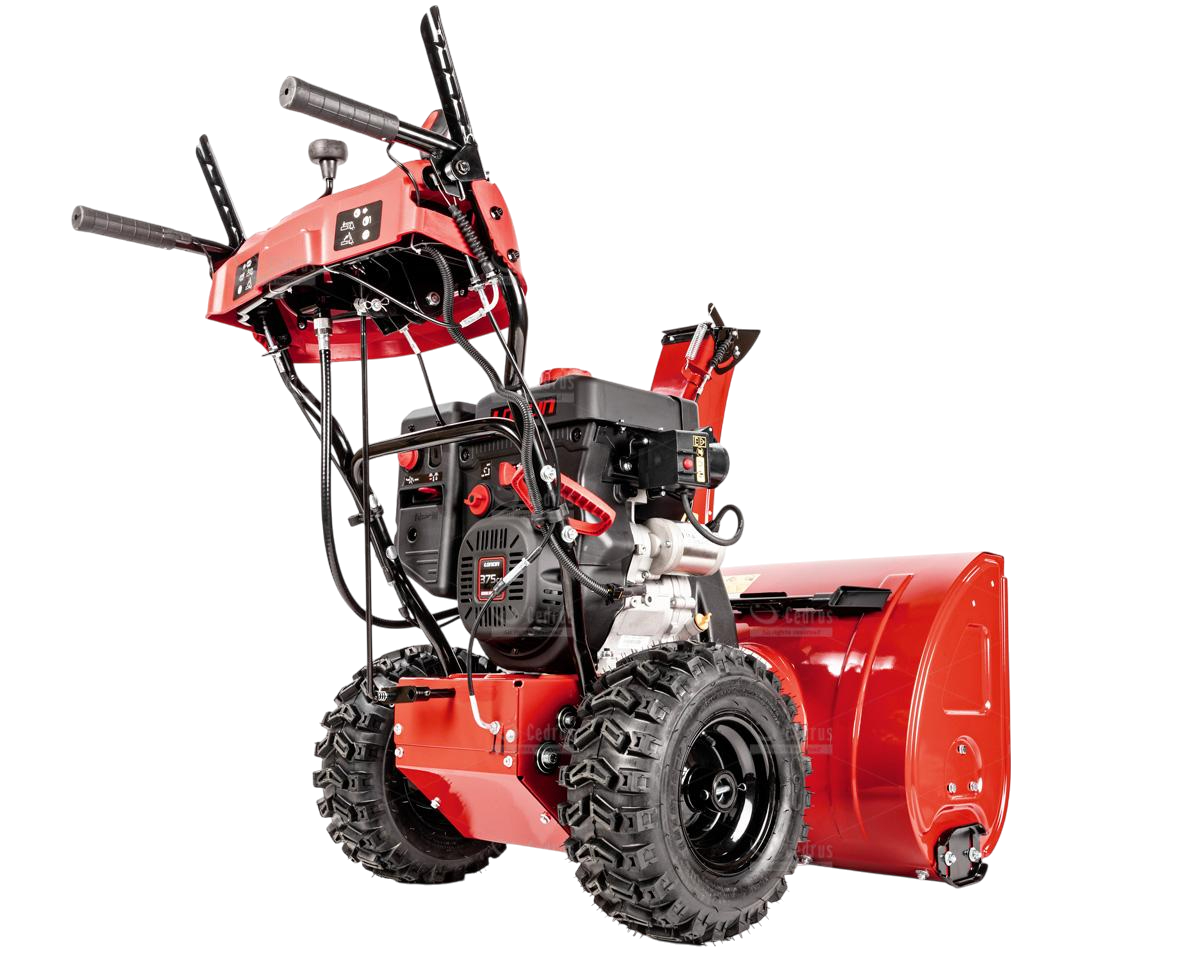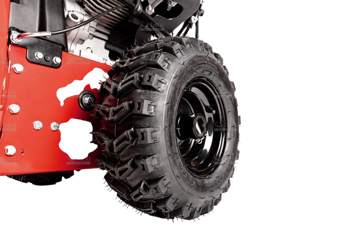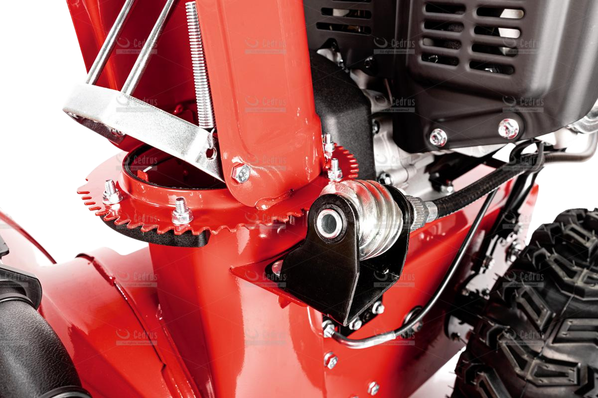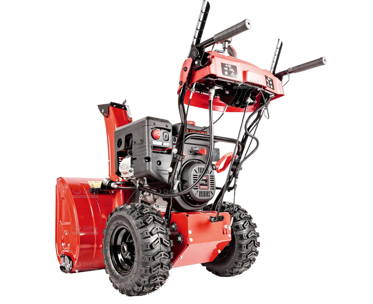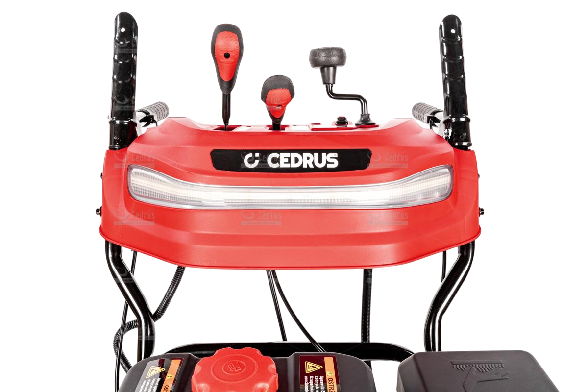 Odśnieżarka Cedrus wyposażona jest w metalowe płozy śnieżne oraz metalowy deflektor z równie solidną końcówką. Odległość wyrzutu śniegu regulowana jest w zakresie od 1 do 15 metrów (w zależności od rodzaju śniegu). Bieżnik kół jest agresywny, zimowy (rozmiar 15 x 6,5 - 7”), co zapewnia doskonałą trakcję.