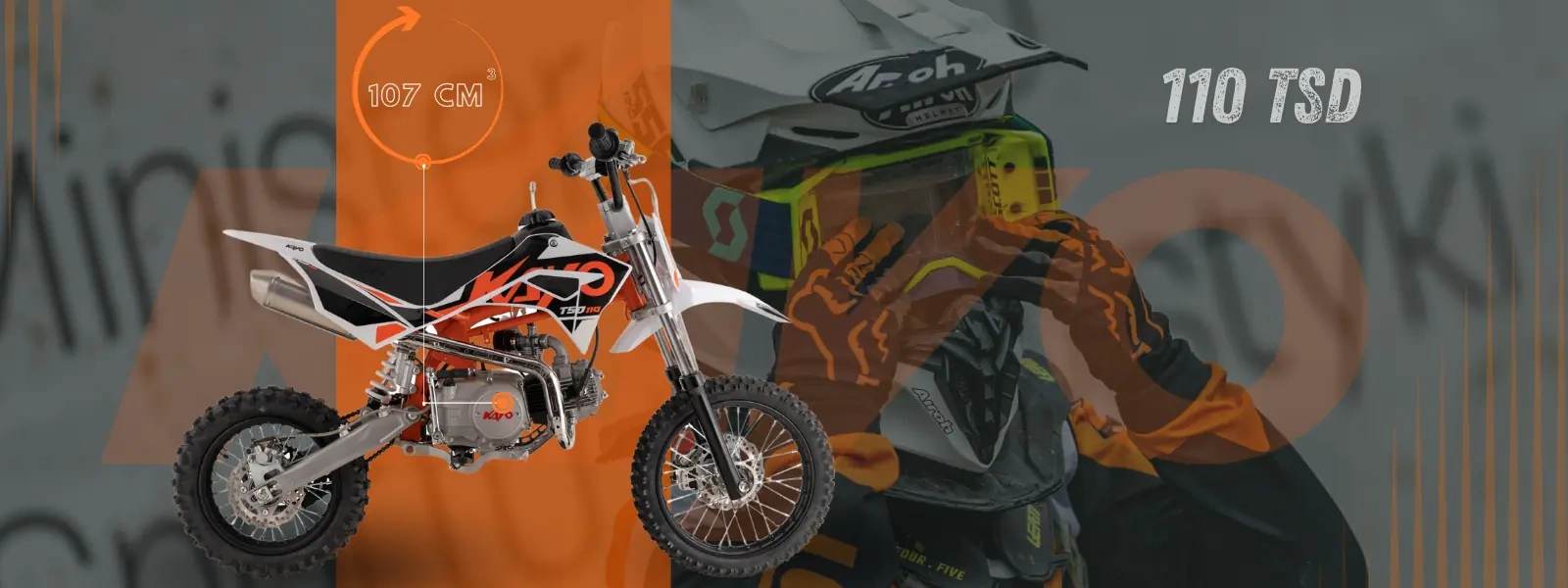 - KAYO 110 TSD to pit bike stworzony z myślą o młodych riderach, którzy chcą rozpocząć swoją przygodę z jazdą w terenie.