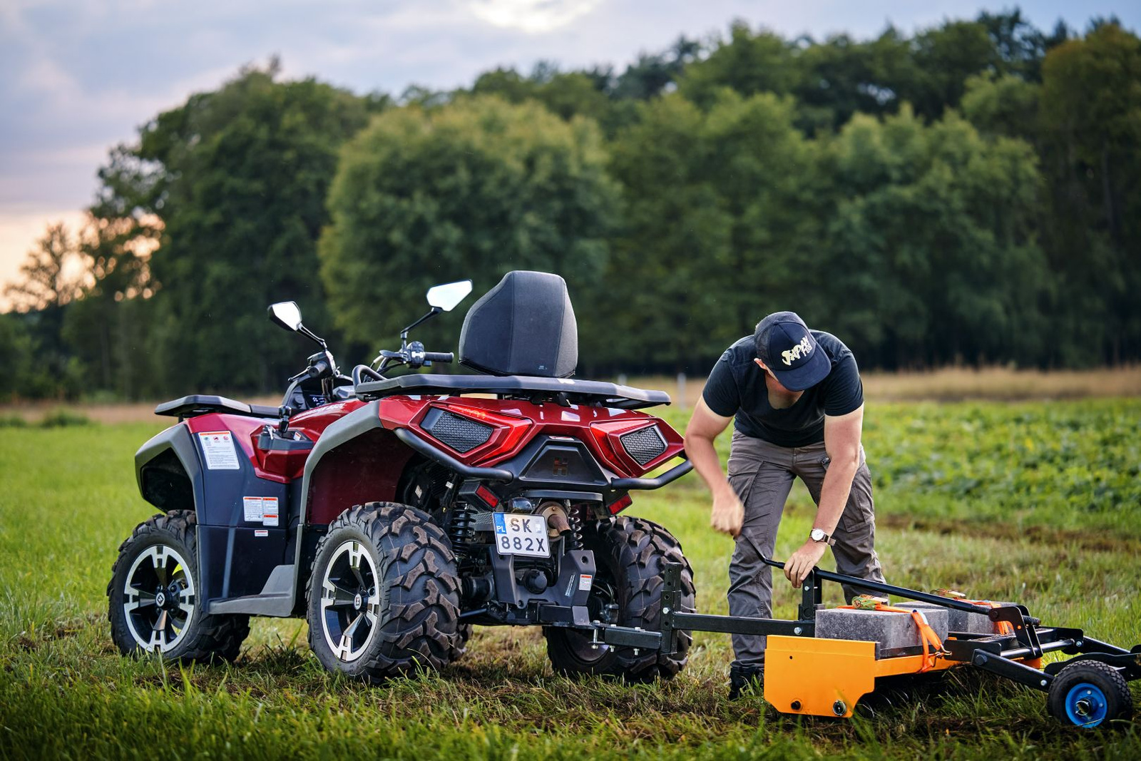 Kompaktowe wymiary (2531 × 1200 × 1450 mm) przy prześwicie 275 mm umożliwiają bezpieczną jazdę w gęstym lesie czy po polnych ścieżkach. Oświetlenie LED gwarantuje doskonałą widoczność po zmroku, a możliwość zamontowania dodatkowych belek świetlnych zwiększa bezpieczeństwo pracy nocą.
