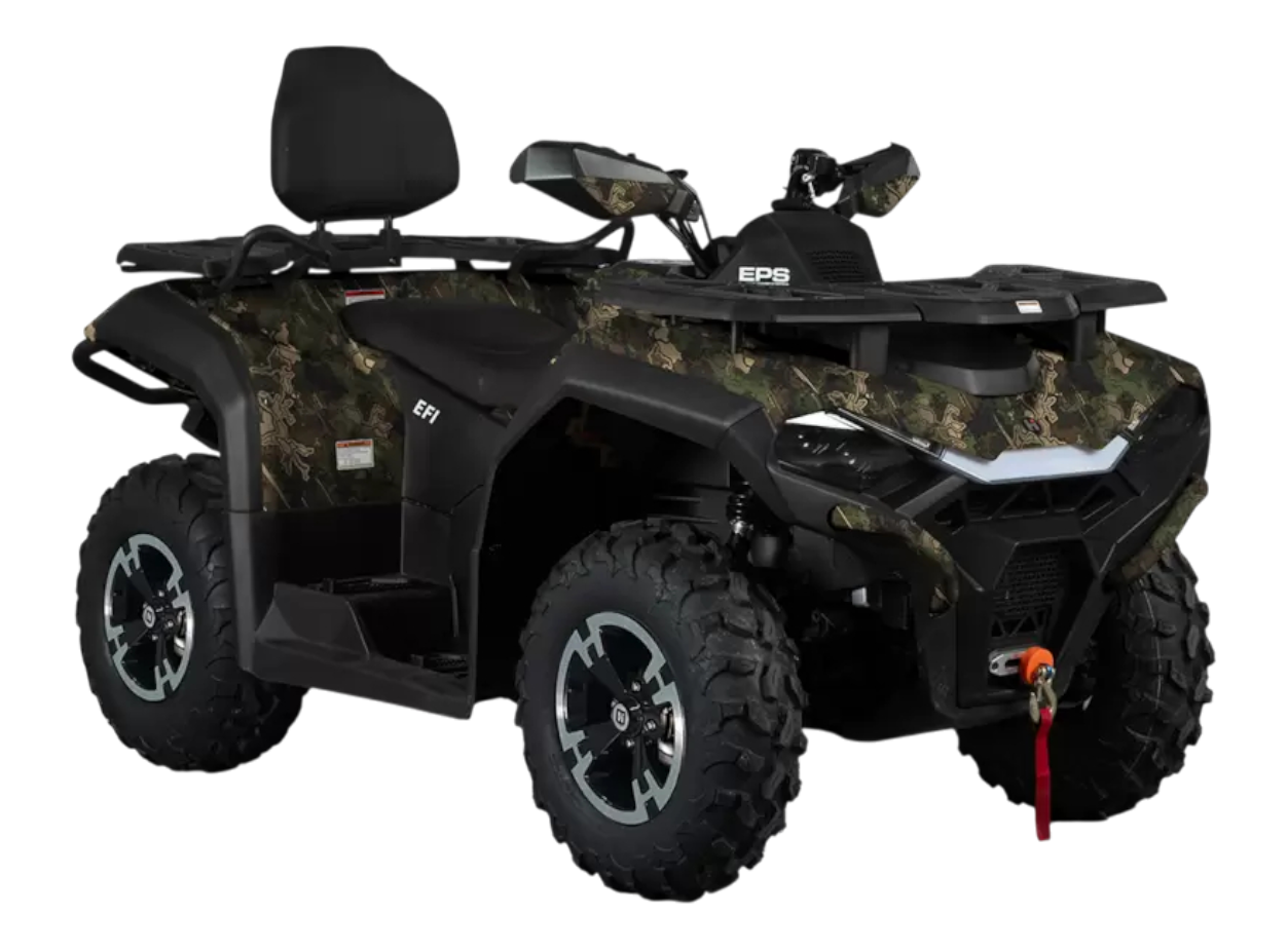 Wyposażenie standardowe: 7" ekran LCD, wyciągarka 2500 lbs, hak holowniczy, światła LED, wskaźniki, klakson, kierunkowskazy, bagażniki przedni i tylny