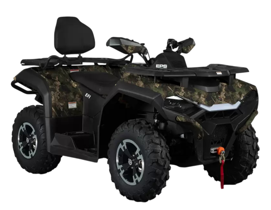 Automatyczna skrzynia biegów CVT (L/H/N/R/P) umożliwia płynne przyspieszanie, a hydrauliczne amortyzatory i wentylowane hamulce tarczowe dają pewność i precyzję prowadzenia nawet w najbardziej wymagającym terenie.