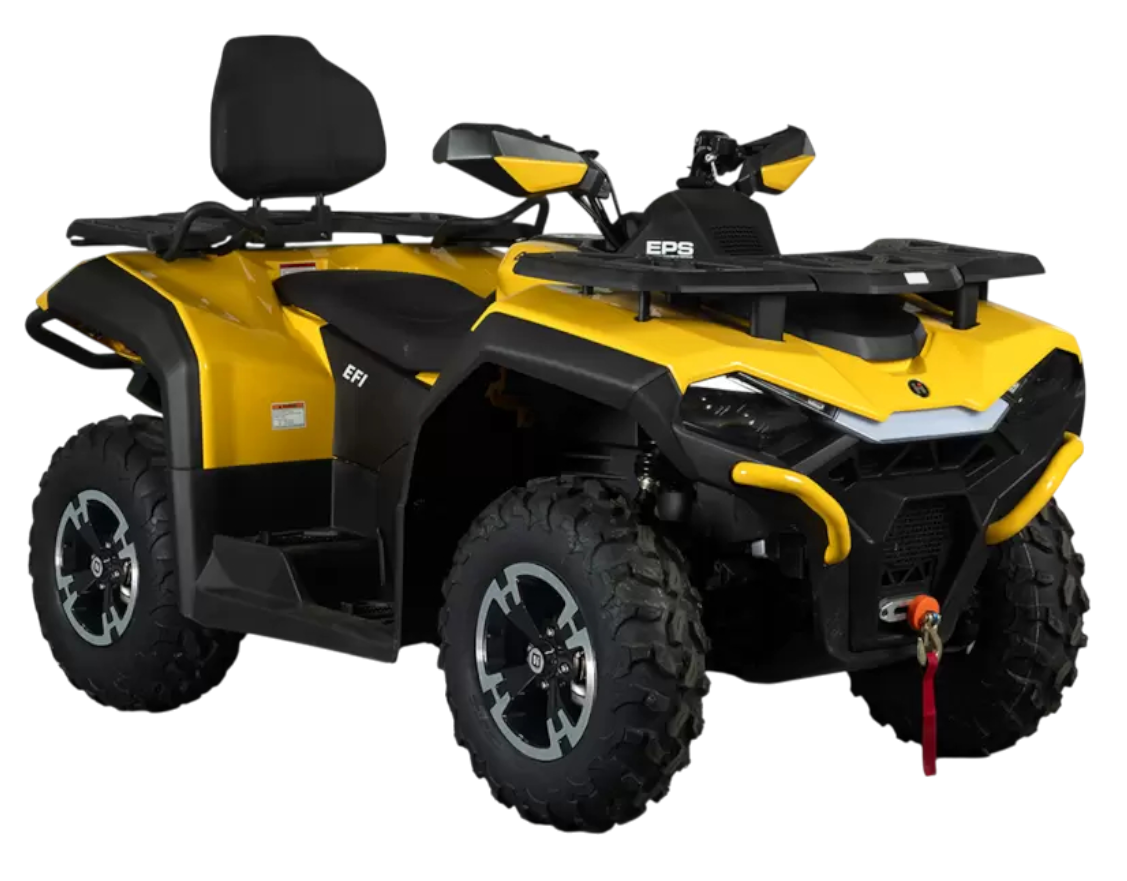 Automatyczna skrzynia biegów CVT (L/H/N/R/P) umożliwia płynne przyspieszanie, a hydrauliczne amortyzatory i wentylowane hamulce tarczowe dają pewność i precyzję prowadzenia nawet w najbardziej wymagającym terenie.